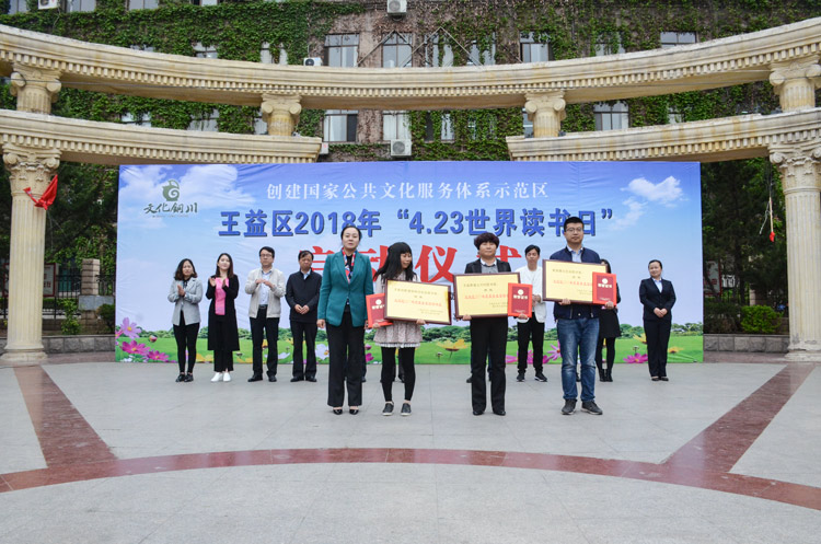 启动仪式上,现场领导为5名"悦读之星" 2个"书香家庭" 2名"优秀志愿者" 3名"最美基层图书室管理员" 3个"最美基层图书室"进行颁奖。为红旗街道综合文化站分馆 、青年路街道文化站分馆分别赠书300册,为王益街道军台岭图书室、 王家河街道冯家河图书室、黄堡镇王家塬图书室分别赠书200册。最后,现场领导与群众在启动仪式背景布上签名。
