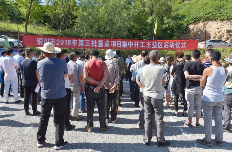 6月28日上午,铜川市2018年第三批重点项目集中开工王益区启动仪式在王益街道办军台岭村举行。区人大常委会主任贺建东,区委副书记、区长王蒙,区委常委、常务副区长刘战杰等出席开工仪式。副区长潘旭辉主持开工仪式。