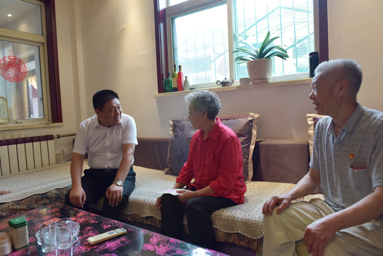 “老人家现在身体怎么样,儿子经常回来不?”在红旗社区郭玉英家里,姜文宏查看了老人家里的住房情况后,仔细询问了老人的身体、家庭和生活情况,并叮嘱老人要保重身体、保持好心情。77岁的老党员郝秋灵,1985年入党,已经有33年的党龄,退休前在桃园街道办事处工作。姜文宏到郝秋灵家中,老两口刚好都在家,见到老人精神矍铄,思路清晰,就和他们亲切交谈起来,祝福老人家健康长寿、心情舒畅。